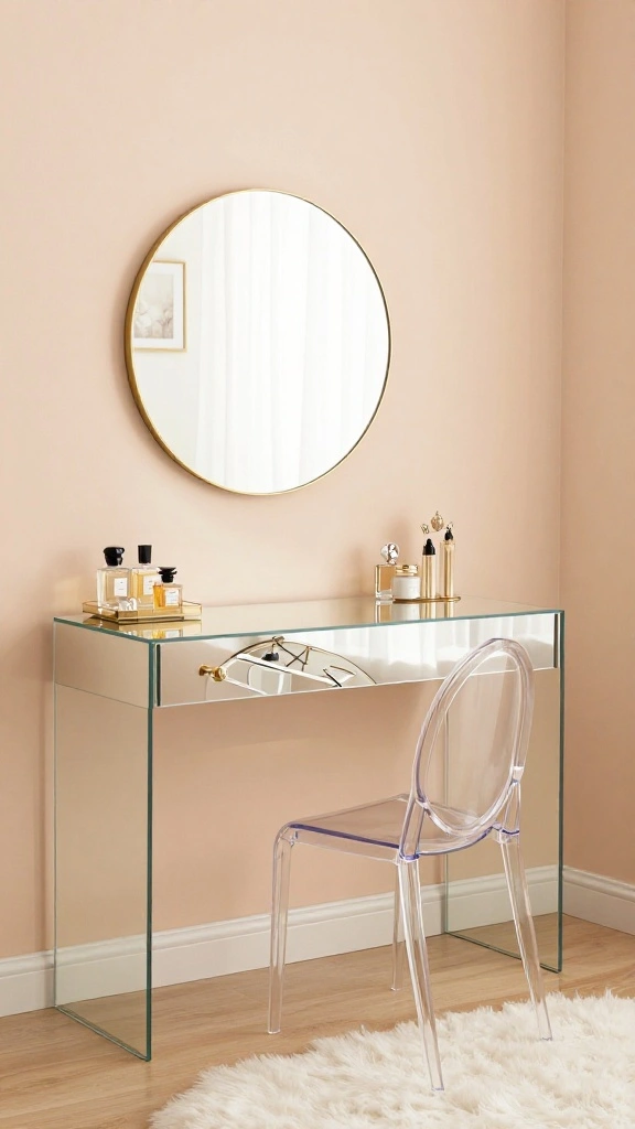 For a sleek and stylish touch, mirrored furniture is a fantastic choice. A vanity table with a shiny mirrored surface can add glamour without overwhelming your space. These reflective pieces amplify light and color, making the room feel more open and airy.