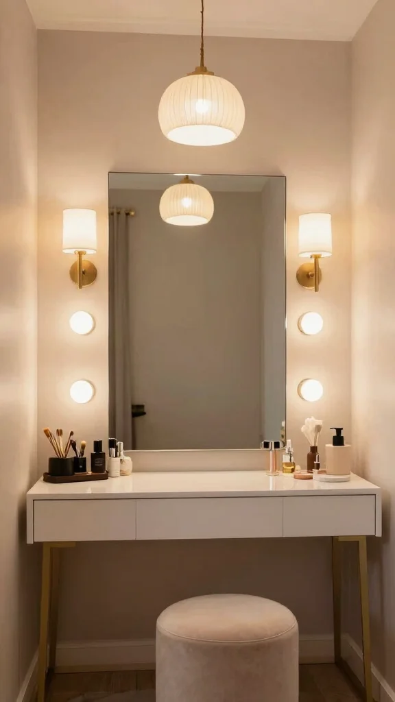 Think function first: height, placement, and storage. Place the vanity at arm’s length for easy makeup application; add a lighted vanity mirror ideas around the frame for even illumination. Keep cords hidden, use a tray with jewelry and skin-care items to keep the surface tidy, and choose a frame that complements your dressing room design. Accessorize with a few well-chosen pieces that reflect your taste to deliver home decor inspiration while staying practical.