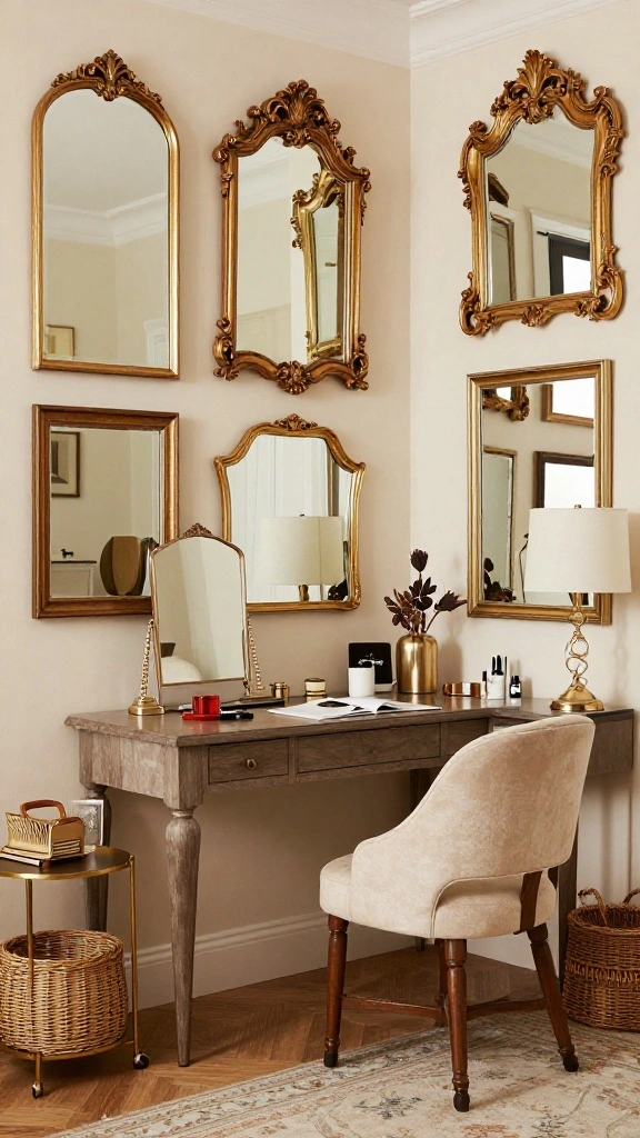To utilize vintage mirrors effectively, hang them at varying heights for an eclectic display. Combining these mirrors with muted colors can enhance the cohesive vintage feel throughout the space.
