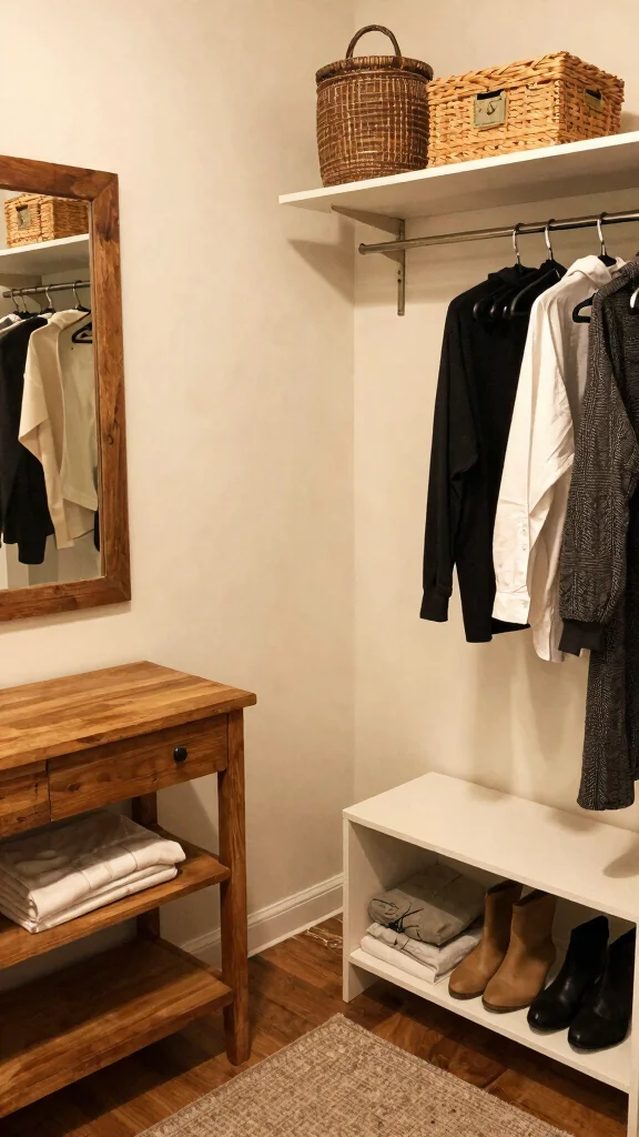 This organized approach not only simplifies your dressing routine but also contributes to a serene and stylish environment.