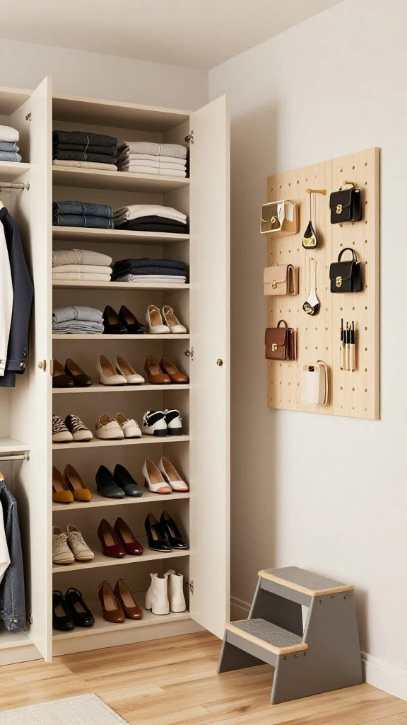 Managing your accessories doesn’t have to be chaotic. Implement smart storage solutions for jewelry, handbags, and scarves to keep everything organized and accessible. Drawer organizers or tiered trays are perfect for smaller items, while decorative baskets can neatly contain larger items. Consider hanging organizers on the inside of your wardrobe doors for belts and scarves, maximizing space while keeping essentials within reach.