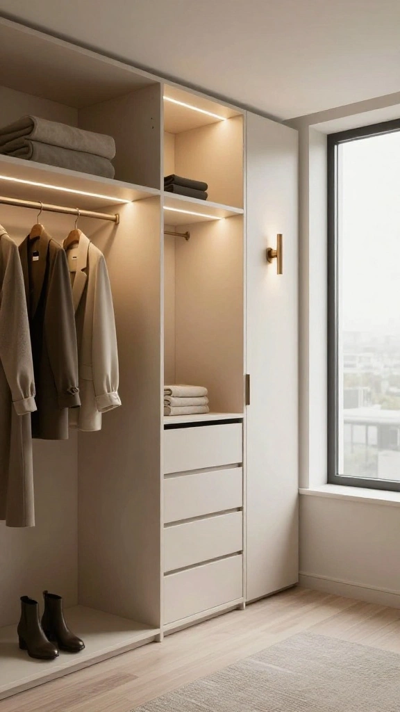 Look for furniture that fits tightly and can be modular. For a budget-friendly closet design, consider modular systems, white melamine panels, and frameless doors. DIY installations can save money: install adjustable shelves, track lighting, and mirror-front doors for a bigger feel. Choose versatile components that work as home storage solutions and deliver a clean aesthetic aligned with interior design tips.
