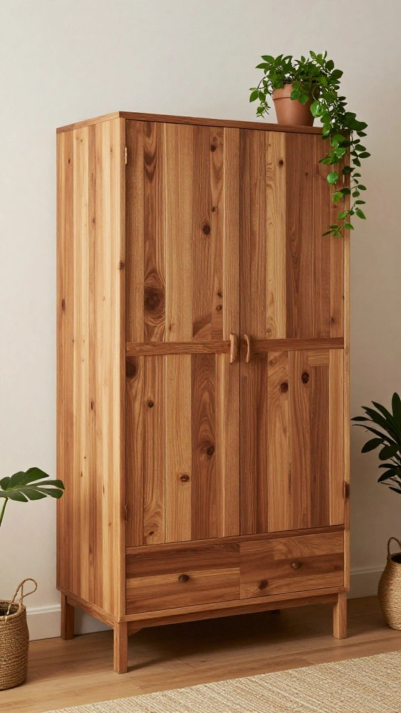 Did you know open shelving can slash outfit-search time by up to 40%? When you pair decorative boxes with plants, your dressing room wardrobe design feels larger and calmer. A minimalist setup, with wood brackets, keeps it practical and stylish.