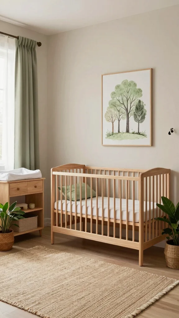An earthy color palette transforms a nursery into a calm, gender-neutral haven. Start with sandy beige, soft sage greens, and muted yellows, then layer wood textures and organic cotton for a practical, cozy vibe in your gender neutral baby nursery ideas.