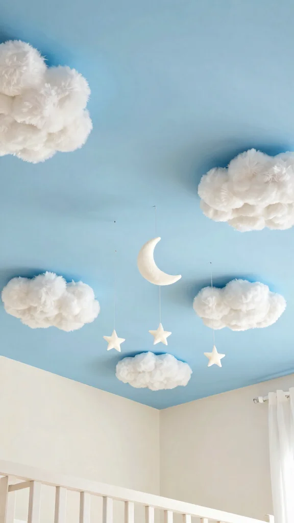 Don’t neglect the ceiling when designing your nursery! A beautifully adorned ceiling can add a whimsical touch to the room. Consider cloud decals, a starlit mural, or hanging mobile elements that sway gently with airflow. This unexpected design choice draws the eye upward, creating a dreamy atmosphere for your little one. Soft lighting can enhance this effect, making the space feel magical.