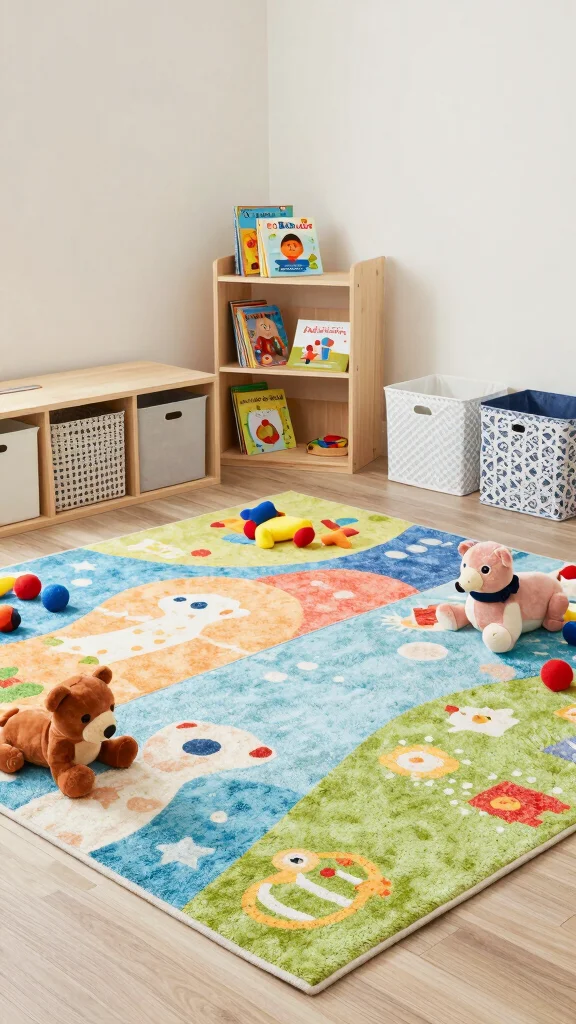 Ensure pathways remain clear to facilitate easy movement throughout the room. Using rugs can help define different areas, creating zones for play and rest.