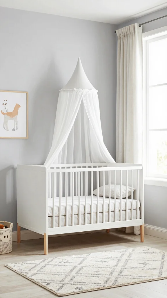 – Use a neutral-toned canopy over the crib for a cozy nook.