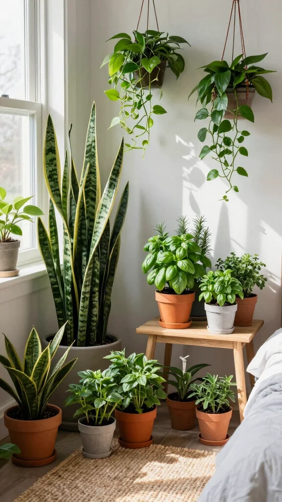 To maximize this natural aesthetic, opt for low-maintenance plants that thrive indoors. You can utilize hanging planters to save space while adding a stunning visual element. Consider a mini herb garden to delight guests who love to cook.