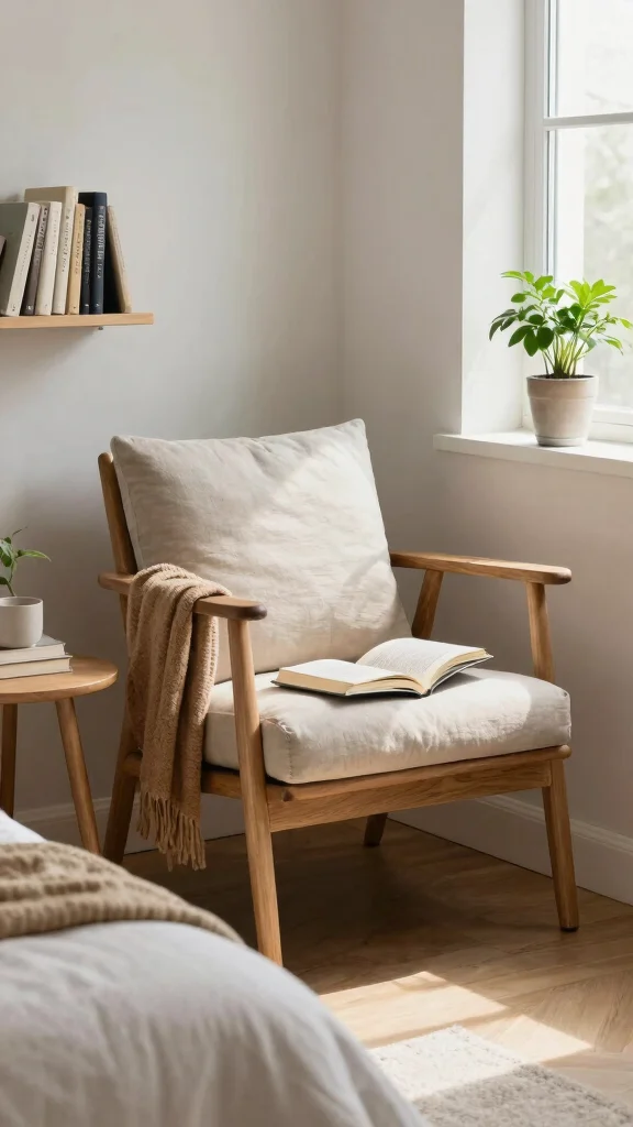 Position the nook near a window to capture natural light, and include a small bookshelf or plant stand for added charm. Calming colors and textures can further enhance the inviting atmosphere.