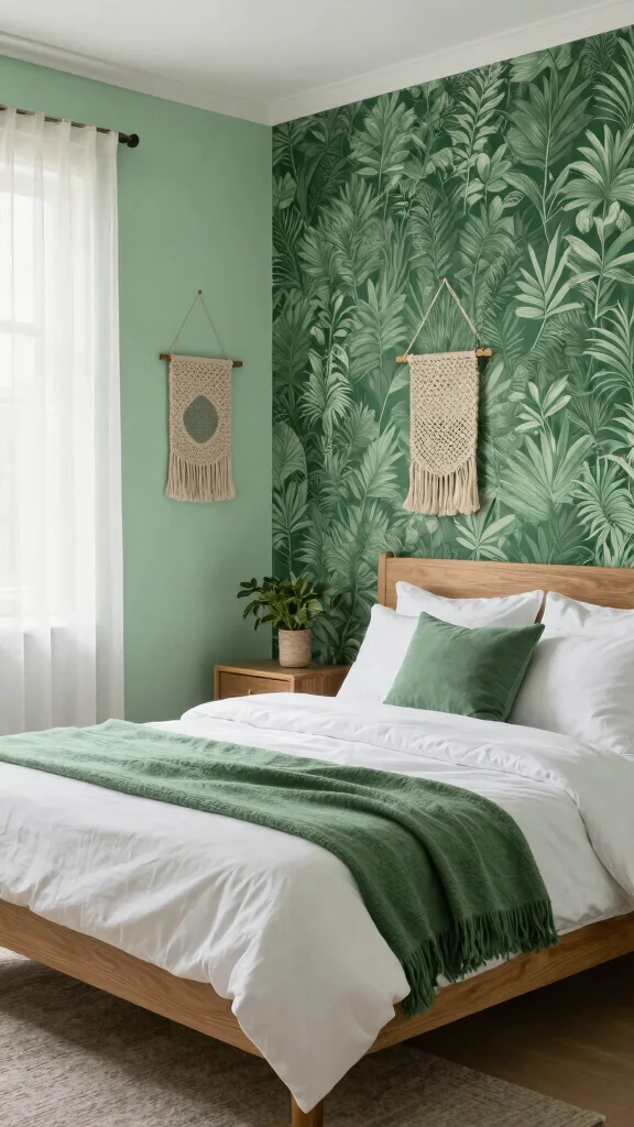 Think about creating an accent wall with deep green botanical wallpaper to add intrigue. Pair this with natural wood furniture to enhance the organic feel. Incorporate textured elements like woven wall hangings to bring warmth into the space.