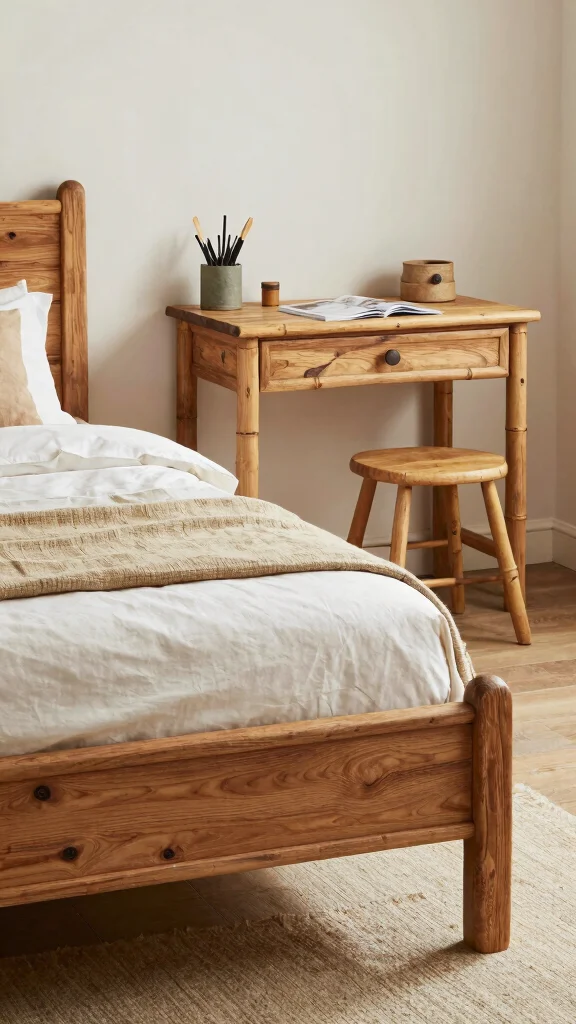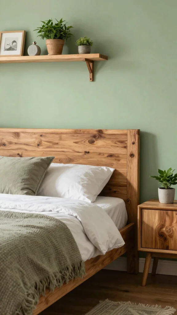 Consider using reclaimed wood for a stylish and sustainable option. Wooden shelving can showcase plants or decorative items, while choosing bed frames and side tables with organic finishes maintains a natural feel.