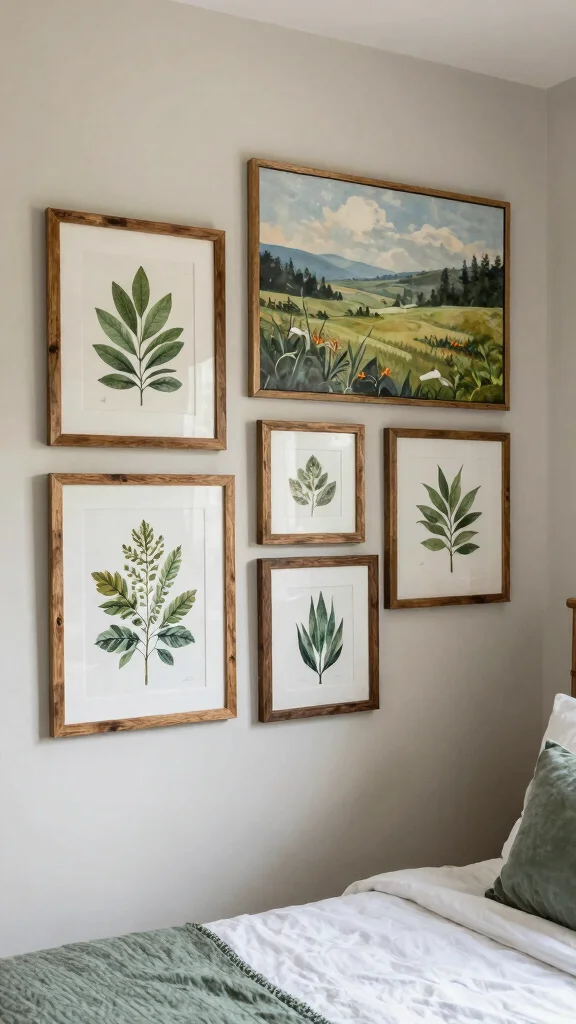 Consider framing pressed leaves or flowers for a unique decorative touch. Group smaller pieces to create an engaging gallery wall, and opt for wooden frames that harmonize with your natural decor.