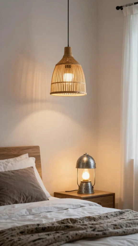 – Select lamps with natural materials for style.