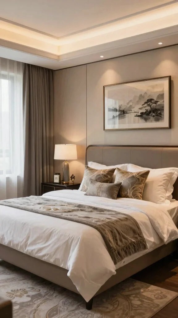 A well-chosen set of decorative accents can transform a space in minutes. Start with a statement mirror or art piece, then layer textiles with a luxe throw, a coordinating rug, and coordinating bedside lamps.