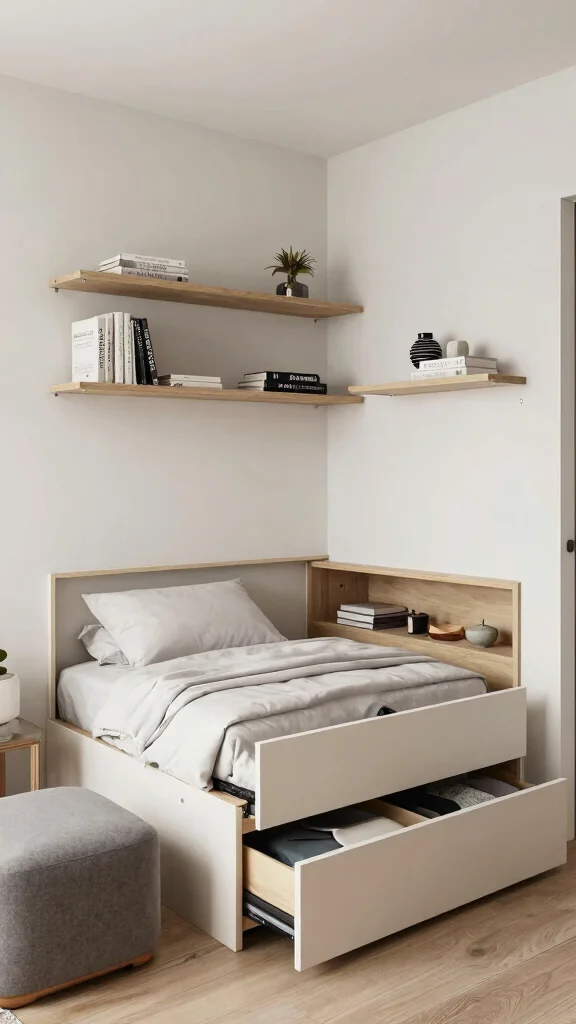 Maximize space with smart storage options like under-bed drawers and multi-functional furniture.
