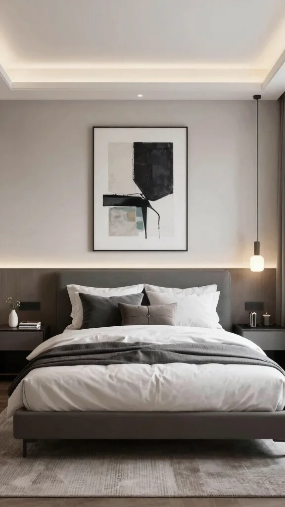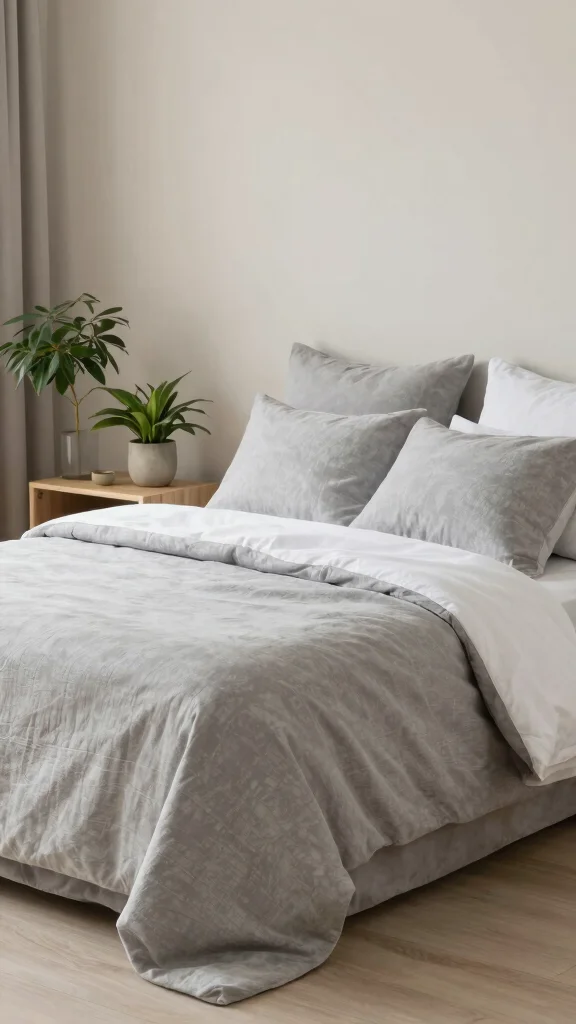 Layering different shades and textures, such as a soft gray bedspread over crisp white sheets, creates a cozy yet sophisticated vibe. Add touches of greenery for a fresh atmosphere that breathes life into the room.