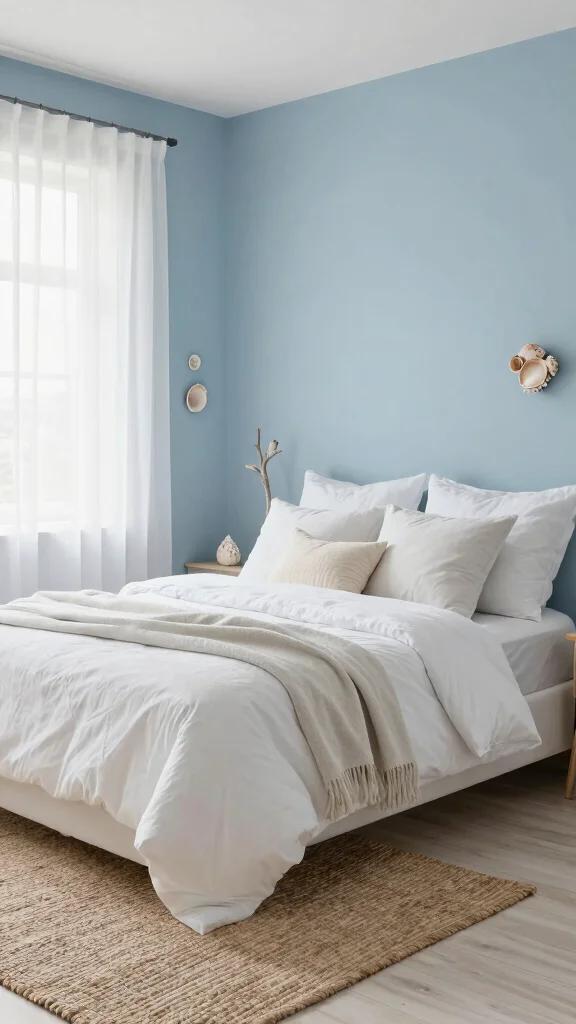 To embody this coastal calm, focus on using natural materials and textures. Affordable options include light linens and jute rugs, which add warmth and comfort to the space.