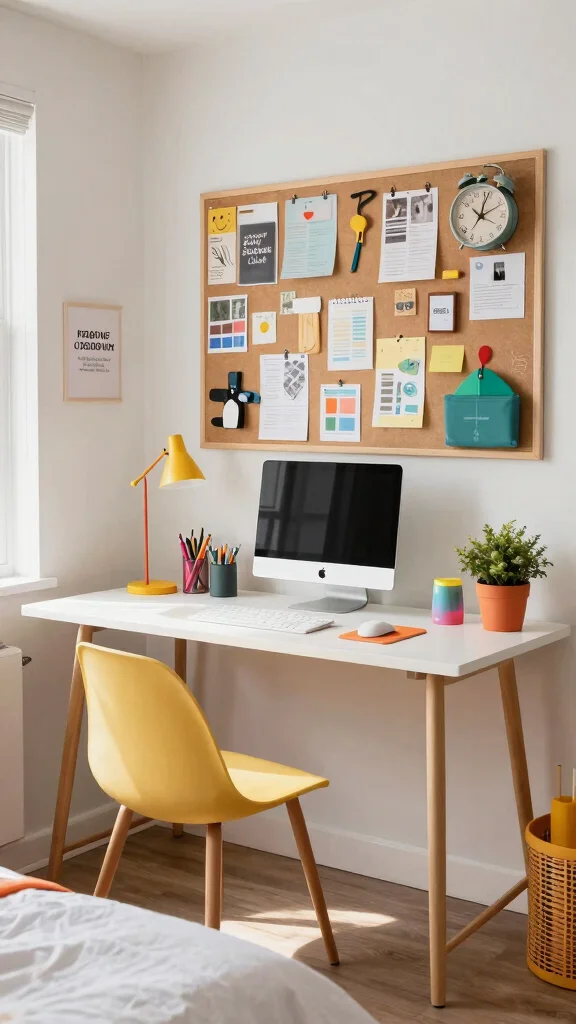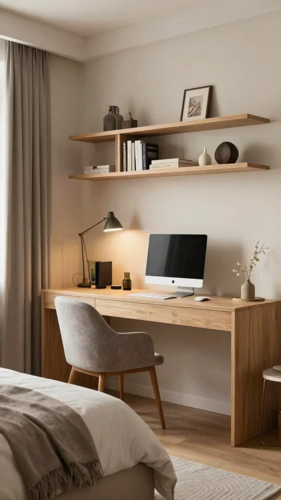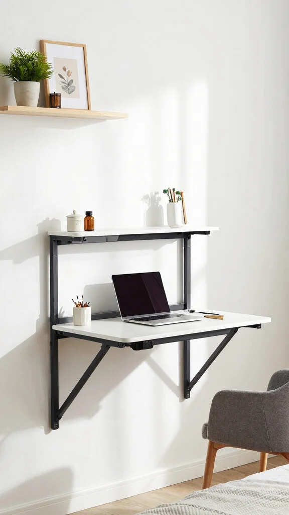 Consider a wall-mounted folding desk to save floor space, pairing it with a stylish chair that can serve as extra seating for guests. This setup keeps your area organized while maximizing functionality.