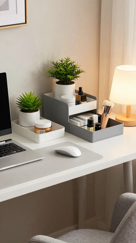 Efficient desk organization will make the space functional for work while remaining guest-friendly.