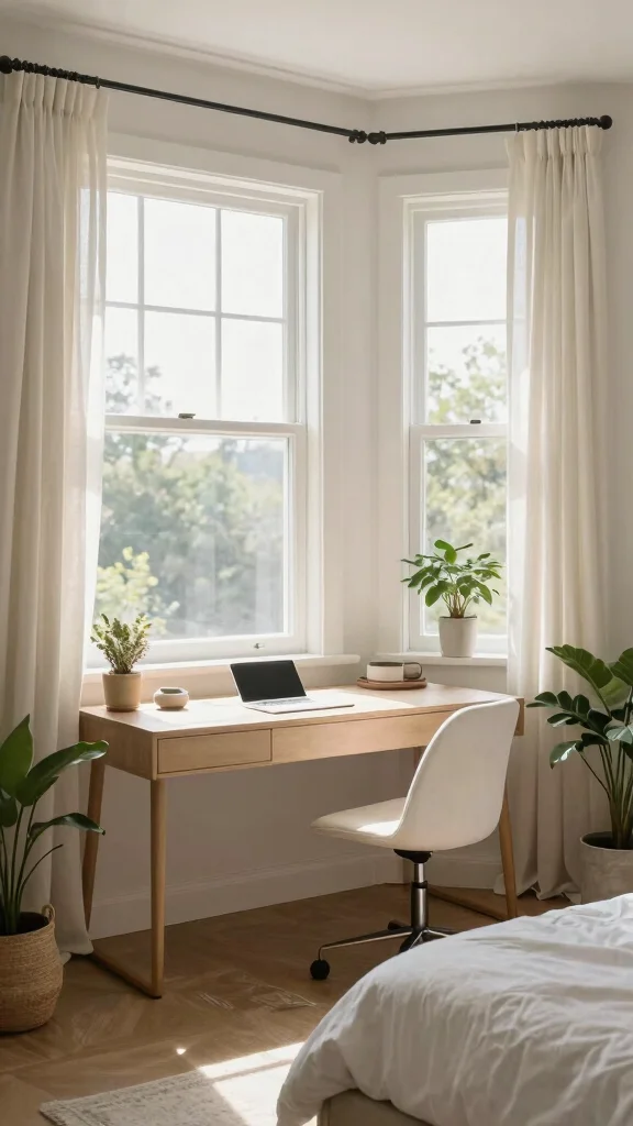 Natural light can transform your guest bedroom office combo, making the space feel more open and inviting. Position your desk near windows to take advantage of sunlight, which can boost your mood and productivity.