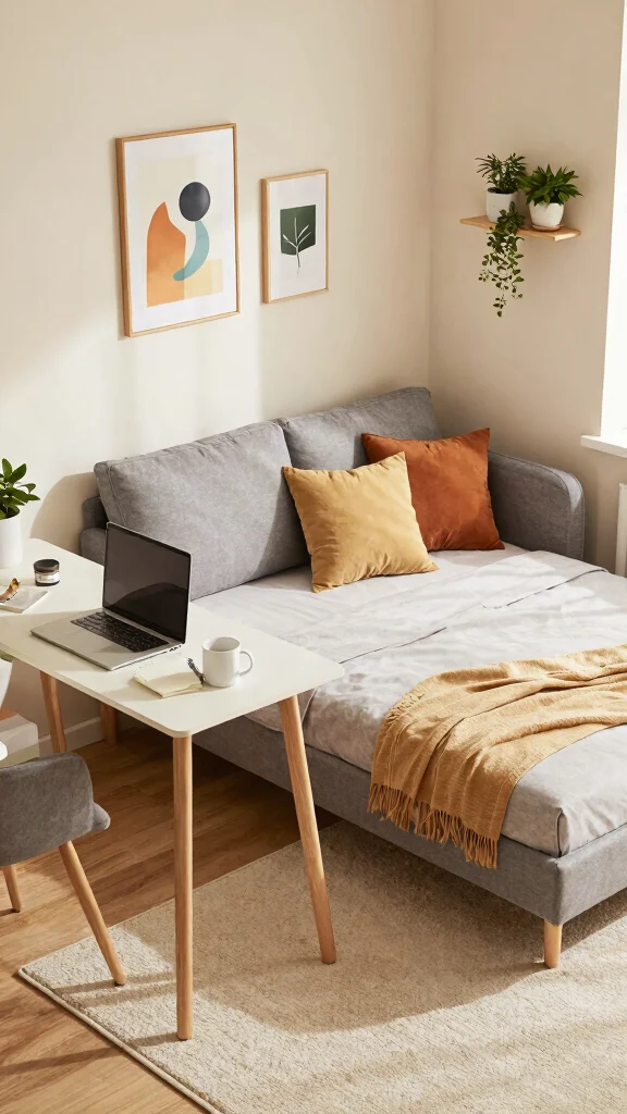 Practical setup: choose space-saving furniture like a wall-mounted desk or a sofa bed, maximize vertical storage with tall shelves, and keep the color palette calm to reduce visual clutter. Bonus tip: use zoning cues like a rug or curtain to define the workspace area when guests are visiting.