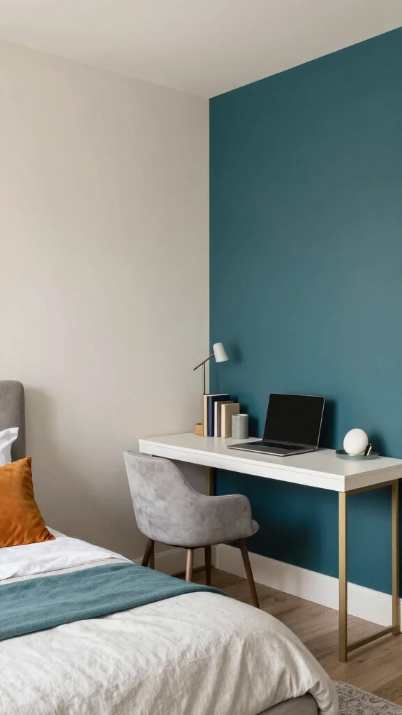 Start with two distinct zones: a comfortable sleeping area and a dedicated work corner. Choose a compact small bedroom office design desk that tucks under a window, add a supportive chair, and layer soft textures (plush throw, warm rug) for a welcoming feel. Use home office decor tips like floating shelves, cable management, and hidden storage so the room stays tidy. Finish with a cohesive color palette to keep the space calm for both guests and productivity.