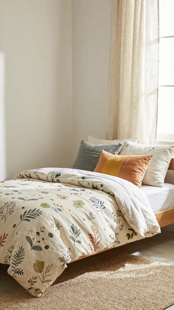 – Install organic cotton bedding with nature-inspired patterns.