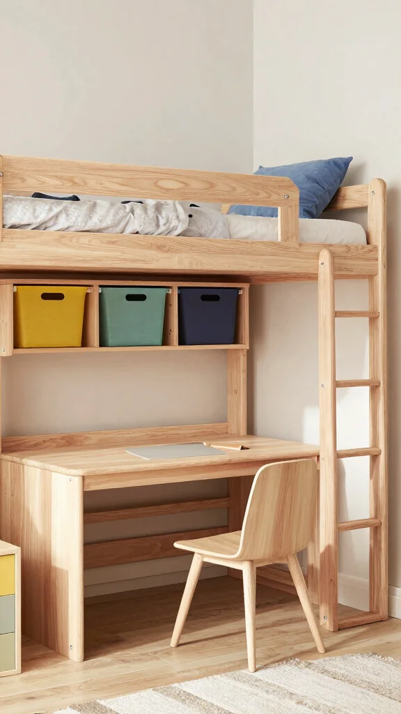 Utilizing sustainable materials for multifunctional furniture adds an eco-friendly touch while ensuring durability. For example, a lofted bed can provide space underneath for a study area or play zone, creating a more open feel in the room.