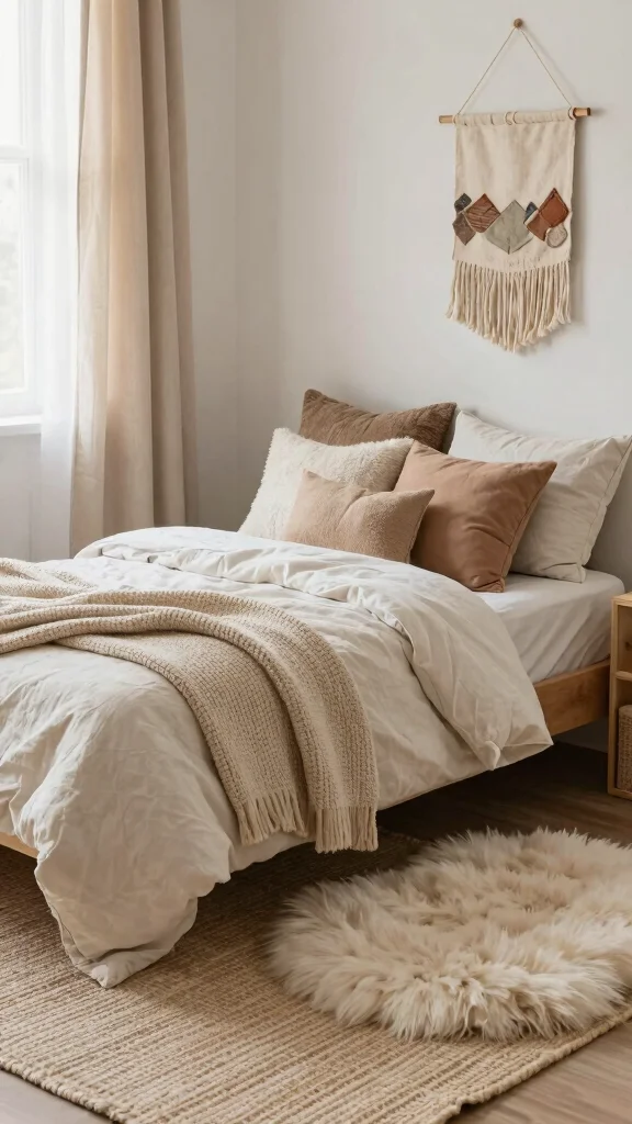 – Layer textures with blankets, pillows, and rugs.