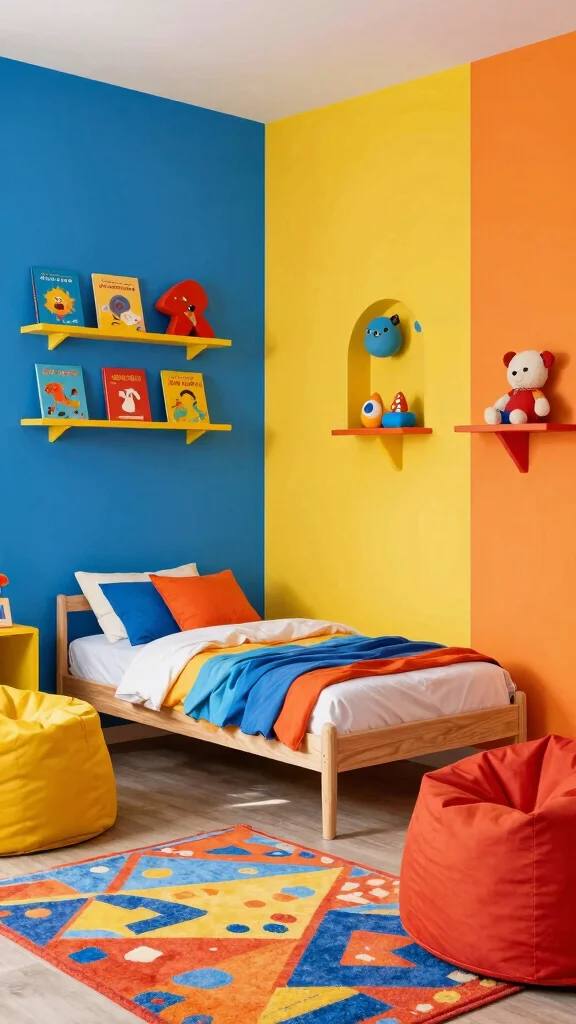 – Playful Color Blocks: Use bold colors to define different areas of the room, making it both fun and functional.