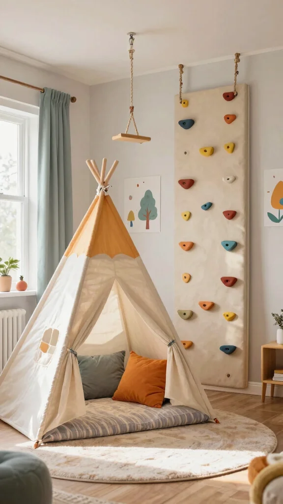 – Interactive Elements: Incorporate playful features like chalkboard walls or climbing shelves to spark creativity and engagement in their space.