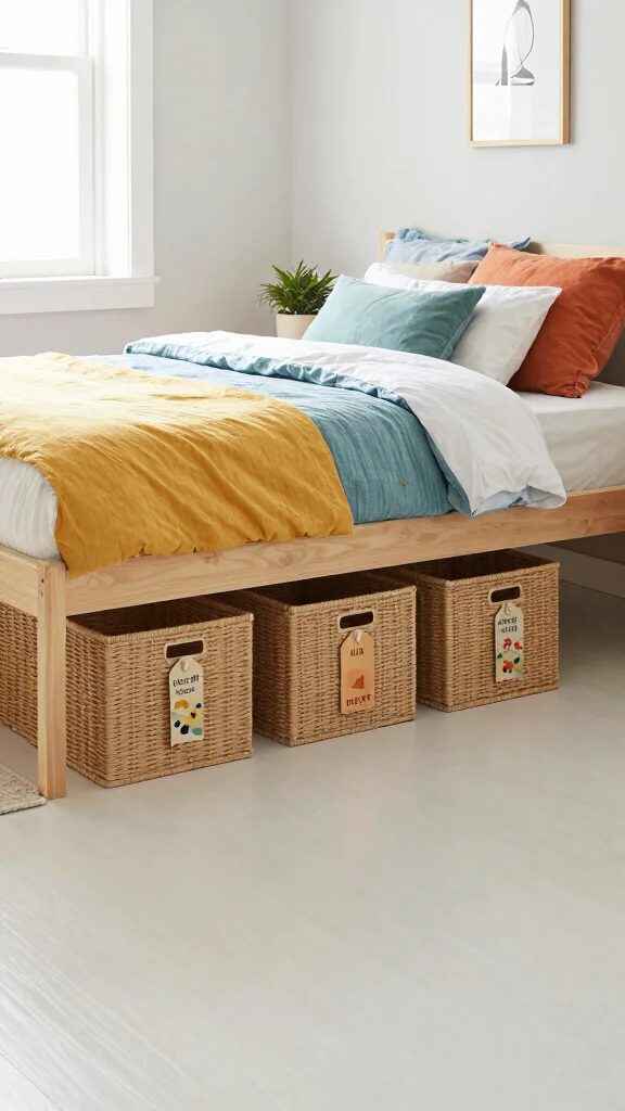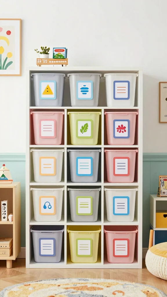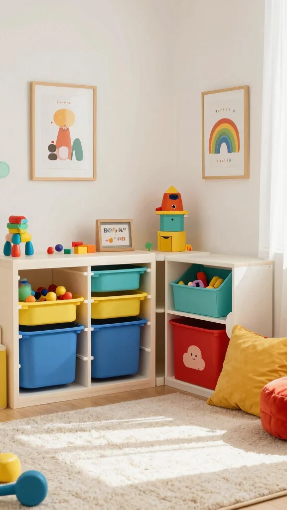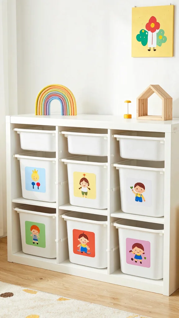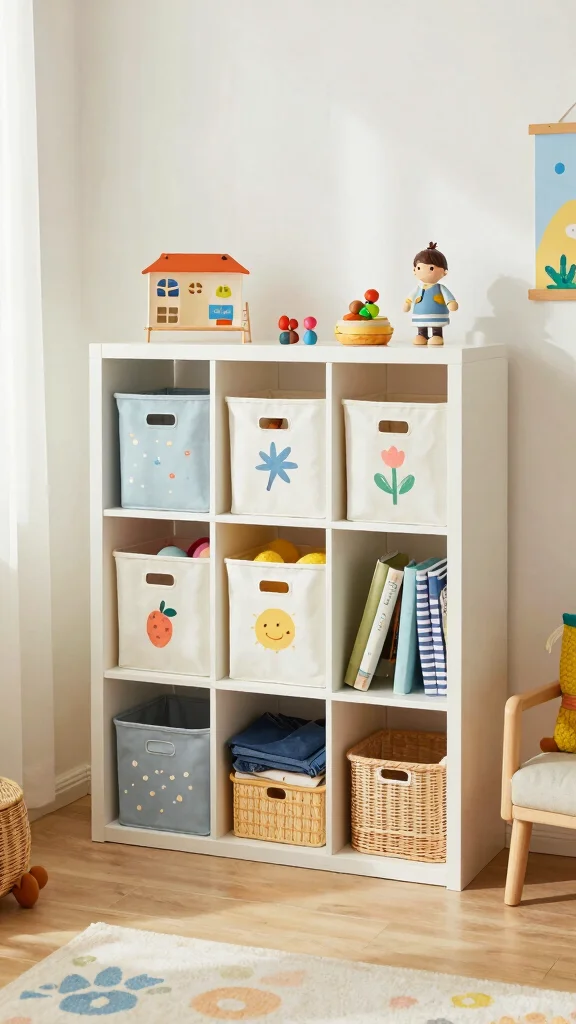 This clever storage solution not only declutters but also enhances the overall aesthetic, combining practicality with style. Customizing bins with paint or fun designs can turn storage into a playful experience.