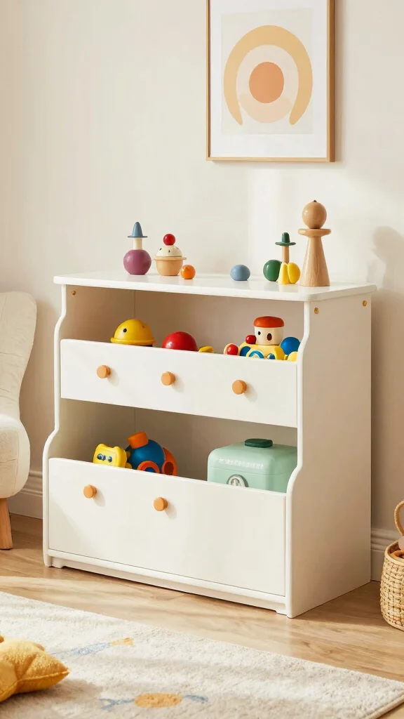 A toy chest can keep toys contained while providing extra seating, especially in smaller rooms. Look for soft-close lids to ensure safety, preventing pinched fingers.
