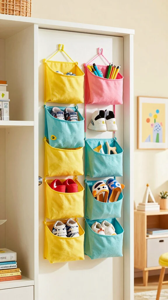 Maximize vertical space in your child’s room with hanging organizers on doors or in closets. These clever solutions can hold everything from shoes to craft supplies, keeping items off the floor.
