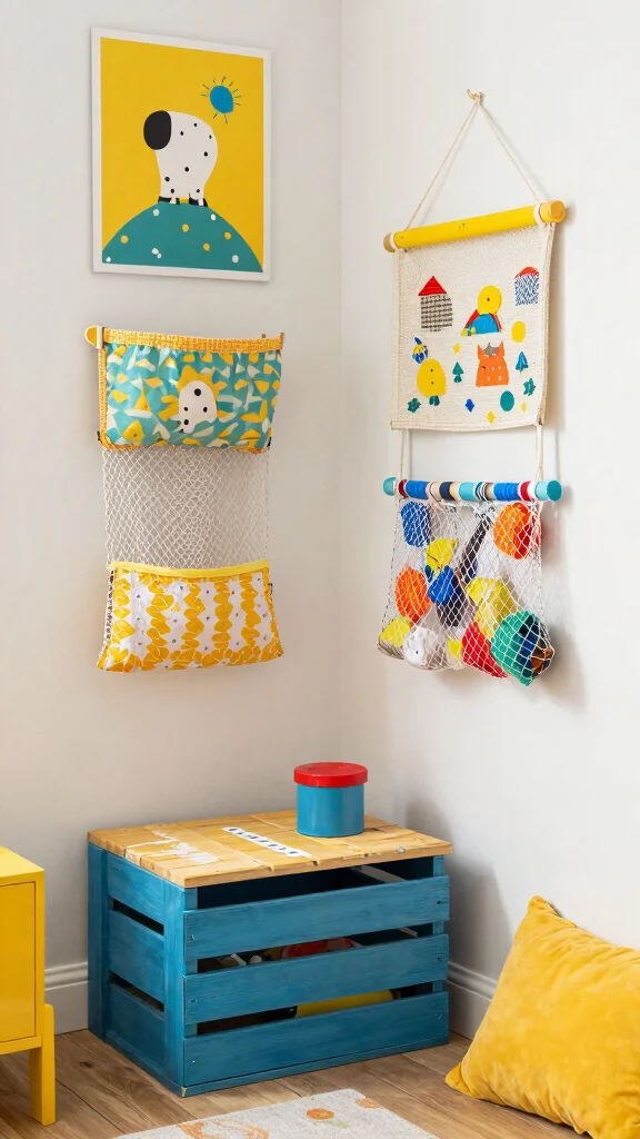 From creative crates to simple hanging storage, the possibilities are endless. This method tidies up the room while sparking creativity and pride in their organized space.