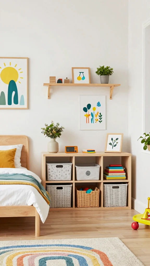 If you prefer a more budget-friendly option, colorful baskets may be ideal for you. They are easily accessible and fun for kids to use. Alternatively, if aesthetics are your priority, wall-mounted shelves can provide a chic look. Each option has its strengths, so choose what fits your needs best!
