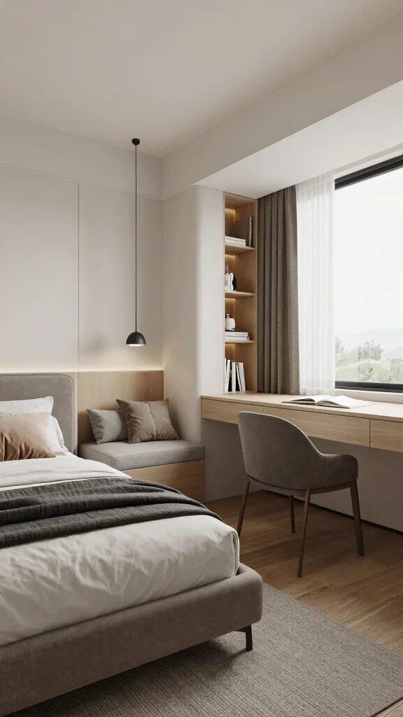 The bed should be the anchor—think a low-profile platform bed with a sculptural headboard and built-in storage to keep the space uncluttered.