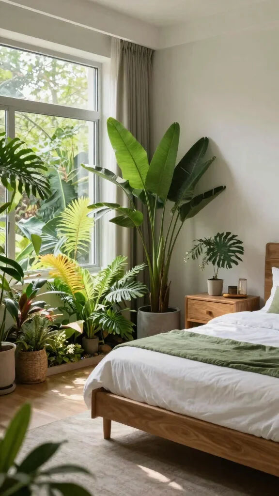 Integrate greenery and natural materials to foster a calming and refreshing environment in your bedroom.