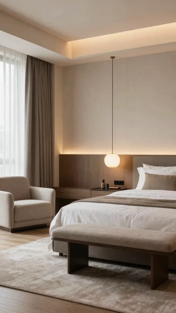 The right lighting can make a world of difference in your master suite, setting the perfect mood for relaxation. Elegant lighting fixtures, such as pendant lights or wall sconces, can serve as beautiful focal points while providing the necessary illumination. When chosen thoughtfully, these fixtures enhance your minimalist decor without overwhelming the space. Imagine a stunning chandelier that complements your design while adding a touch of sophistication.