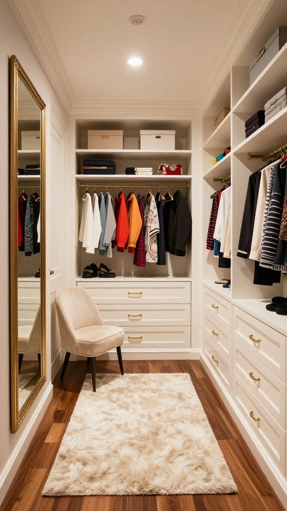 This cozy corner not only elevates the overall aesthetic but also encourages a relaxed atmosphere in your dressing space.