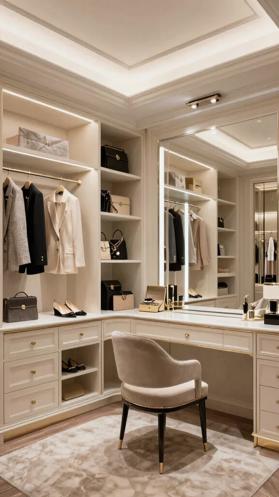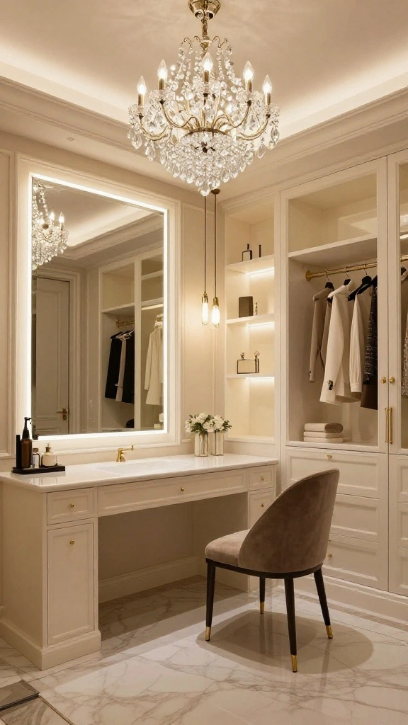Elegant Lighting Solutions: Use layered lighting to enhance both functionality and ambiance in your dressing area.