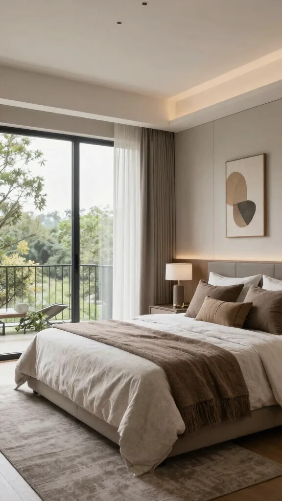 Biophilic design turns your master bedroom into a serene retreat—plants, natural light, and soft textures effortlessly boost mood. It’s a practical move for modern bedroom design master luxury: add low-maintenance greenery and sheer curtains to invite daylight, then source reclaimed wood for a subtle luxury touch.
