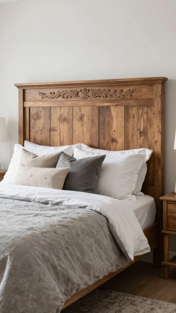 A statement headboard can significantly elevate the aesthetic of your master bedroom. Opt for a headboard with intricate woodwork or a tufted fabric in earthy tones to create a stunning focal point above your bed. A reclaimed wood headboard adds rustic charm, while a modern upholstered option introduces elegance and sophistication.