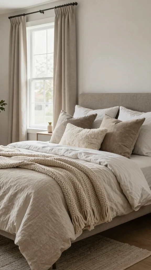 This focus on soft textiles transforms your bedroom into a serene retreat, perfect for rest and rejuvenation.