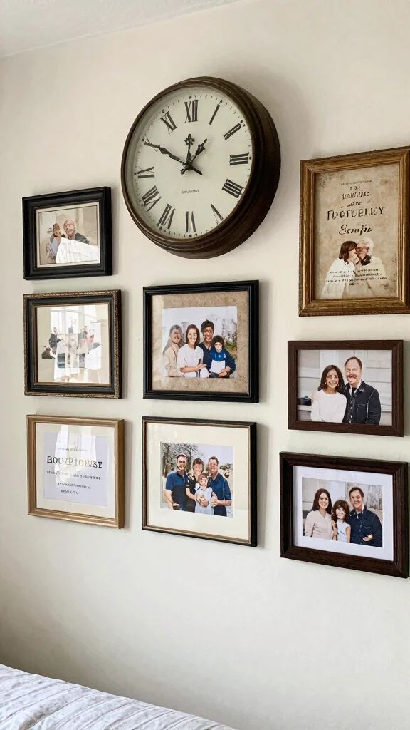 Consider using picture frames that match your decor style or creating a dedicated gallery wall to enhance the farmhouse charm. This curated collection of personal items adds depth and meaning to your space.