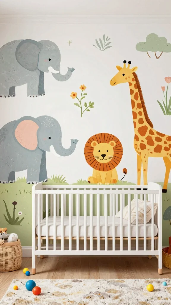 An animal-themed accent wall brings a playful and educational element to your nursery. Choose between a large mural or a collection of decals that feature wildlife, making the design both fun and engaging. Eco-friendly stickers make this approach practical and easily changeable.