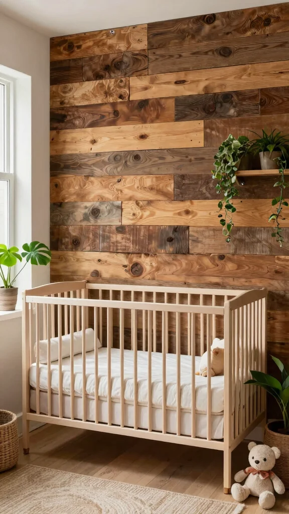 A reclaimed wood accent wall adds rustic charm and a sense of sustainability to your nursery. Each plank tells a story and brings unique character, making it not just visually appealing but also eco-conscious.