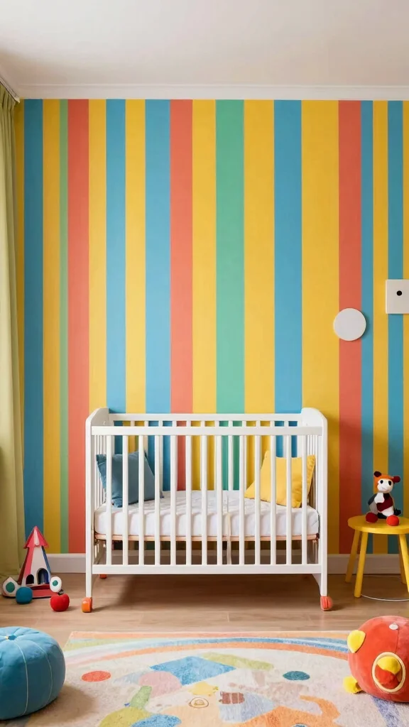 Stripes can inject a fun and energetic vibe into your nursery! Whether you choose bold colors or soft pastels, this design is adaptable to suit your style. Using eco-friendly paint ensures a healthy space for your little one.