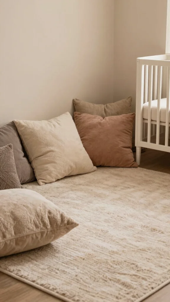 This cozy floor seating not only encourages bonding but also enriches the overall comfort of your nursery corner.