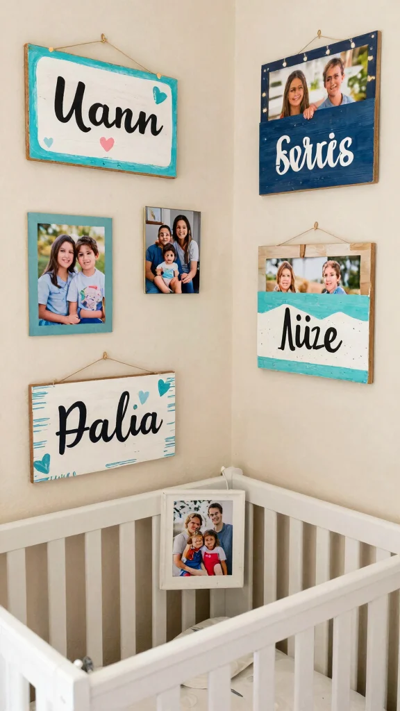 – Showcase milestone photos framed creatively in the corner.
